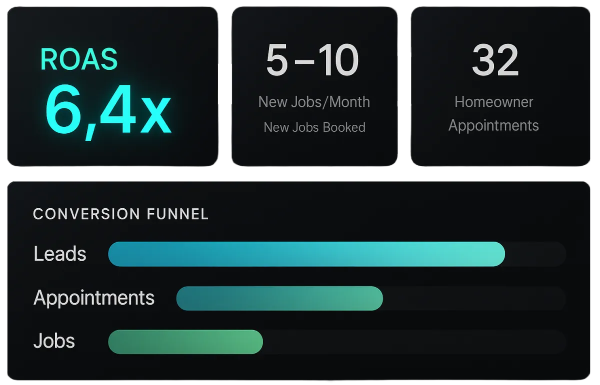Our goal: bring you homeowners ready to book, fill your calendar with 5–10 new jobs each month, and give you predictable growth you can trust.
